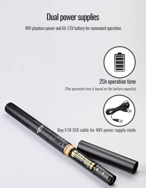 Depending on your requirements, simply switch between cardioid or supercardioid polar patterns. Additionally, the Takstar SGC-578 can be powered by either an 1.5AA battery or by connecting 48V phantom power.